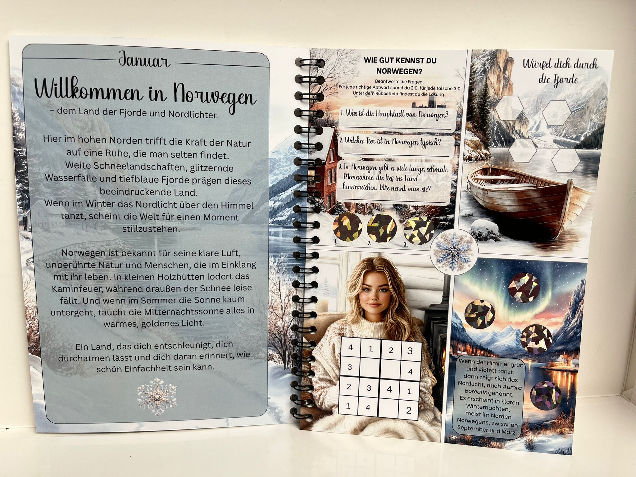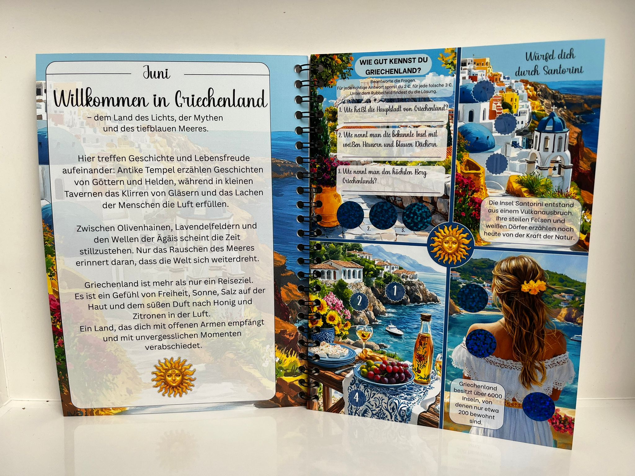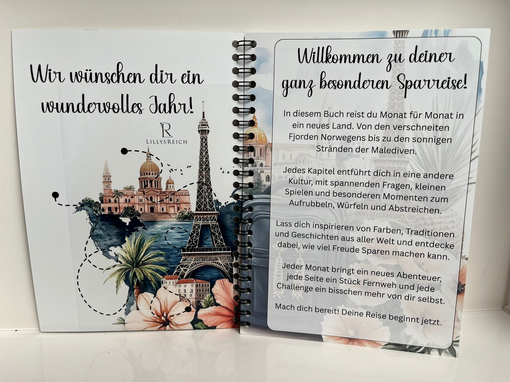 Mit diesem liebevoll gestalteten A5 Sparchallenge-Booklet begibst du dich auf eine ganz besondere Sparreise. Jeder Monat führt dich in ein anderes Land, mit passenden Farben, Motiven, kleinen Rätseln und Sparaufgaben. So wird Sparen nicht nur einfacher, sondern auch zu einem echten Erlebnis.