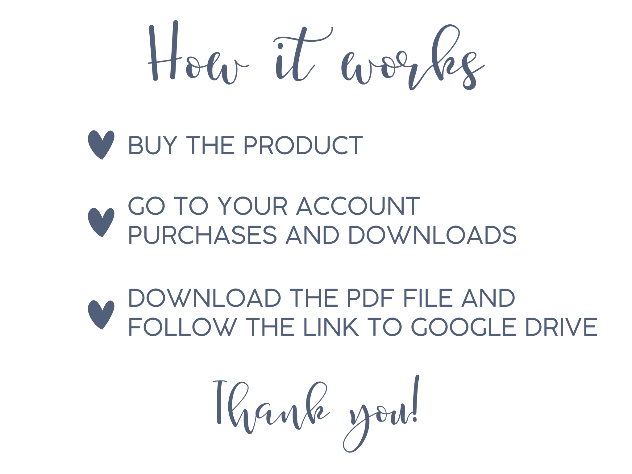 Nach dem Kauf erhältst du sofort eine PDF-Datei mit einem Download-Link zu deinem Google-Drive-Ordner.