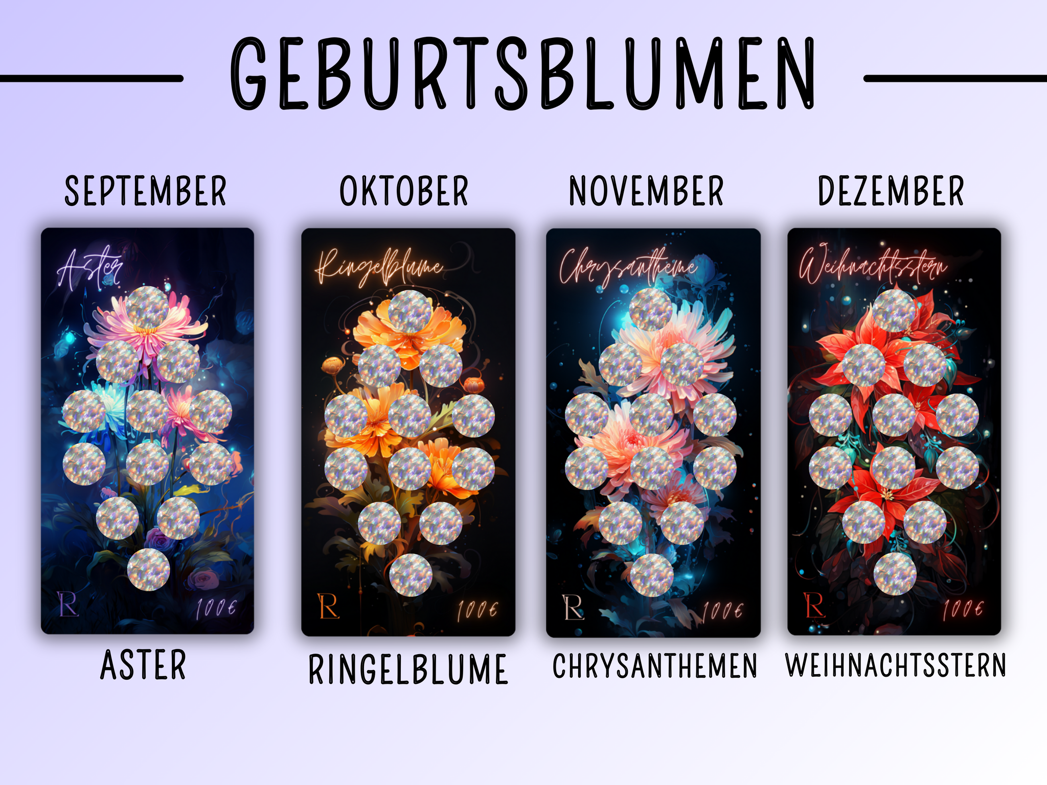 Jeder Geburtsmonat hat eine Geburtsblume. (Es gibt verschiedene Varianten)