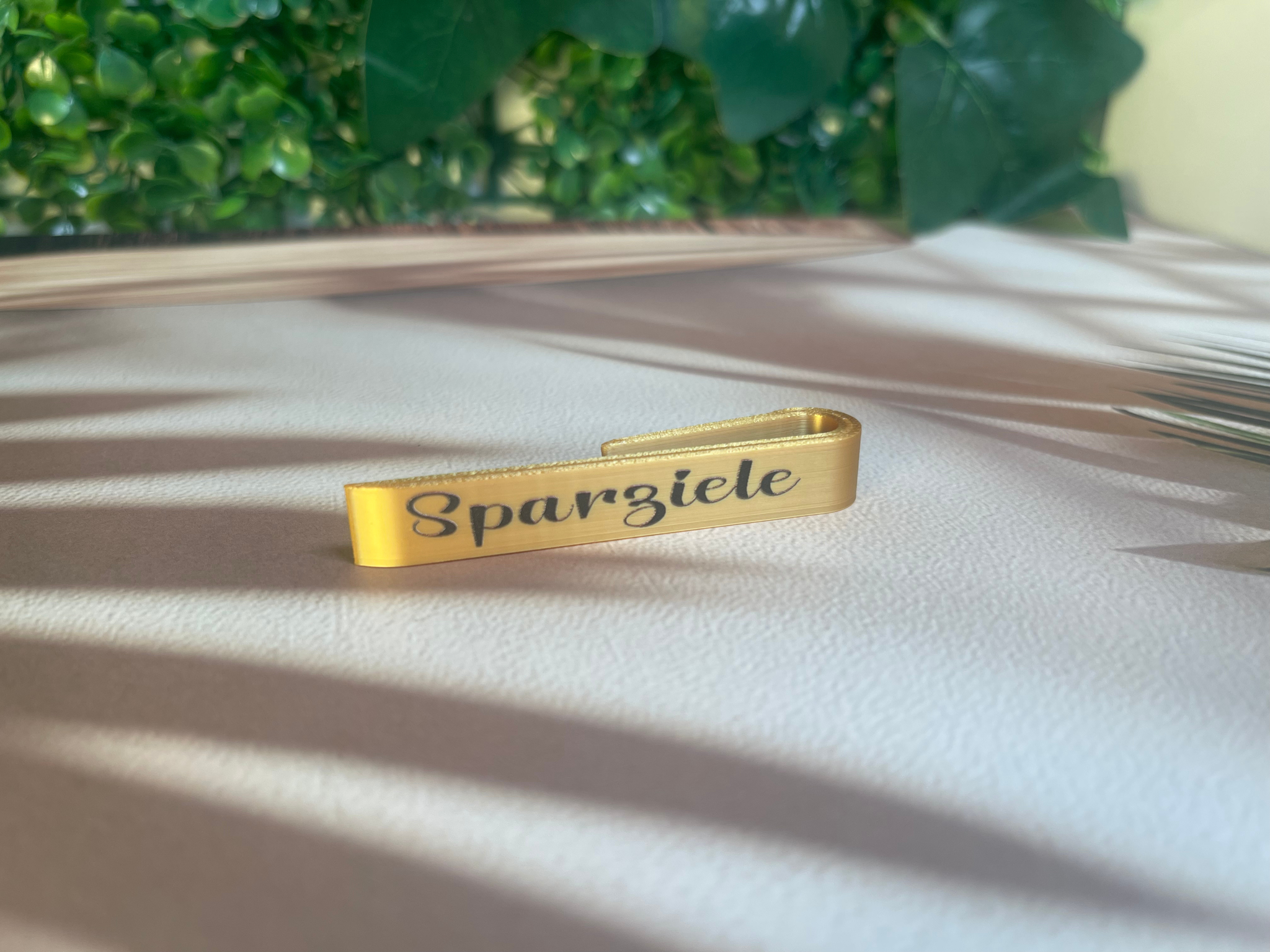Diese hochwertige Binder Klammer wird außen am Binder befestigt und eignet sich perfekt zur Kennzeichnung deiner Sparbinder. Egal ob Urlaub, Sparziele oder Sinking Funds, mit dieser eleganten Lösung behältst du auch im Regal den Überblick. Der Text wird per UV Druck direkt auf die Klammer gedruckt.